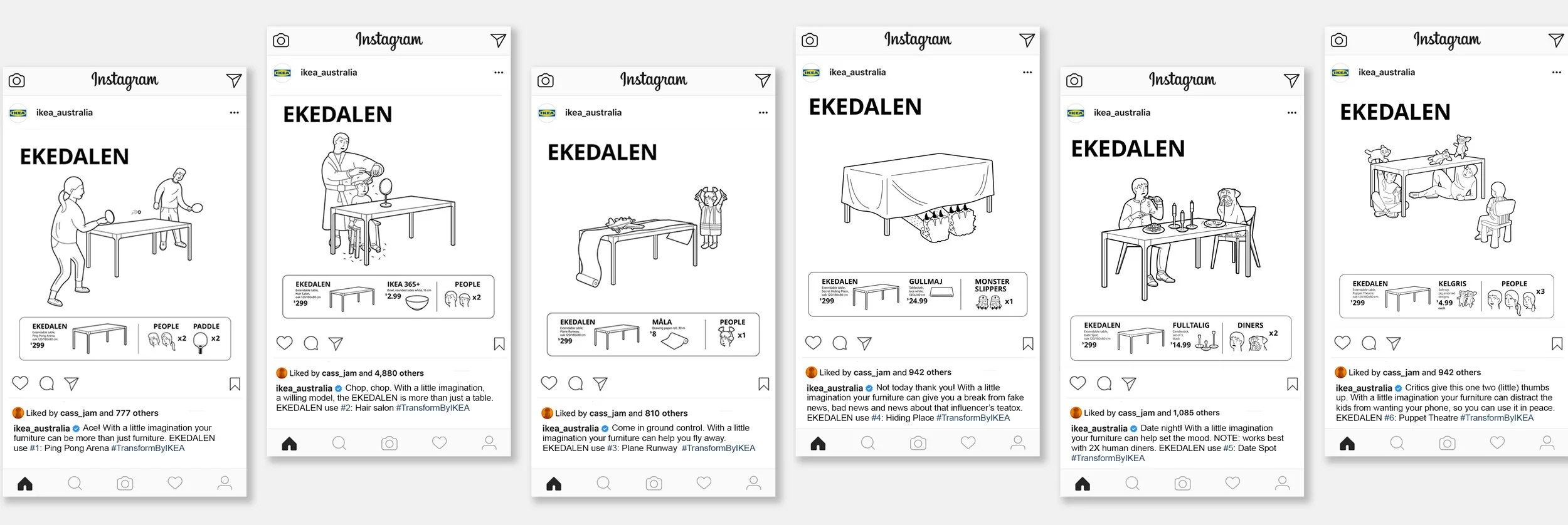 Assembly instructions that turned IKEA products into lockdown essentials. During the COVID lockdown, IKEA added extra assembly instructions to their most popular products. Over 50 illustrated instructions helped people find clever ways to deal with everything from cancelled holidays to haircuts, workouts to WFH, live sport to living with kids who couldn’t go to school. Released in context to what was happening in the world, we provided a solution to anything and everything life at home threw at us (yes, even Trump’s Tweets about injecting disinfectant... hide!).