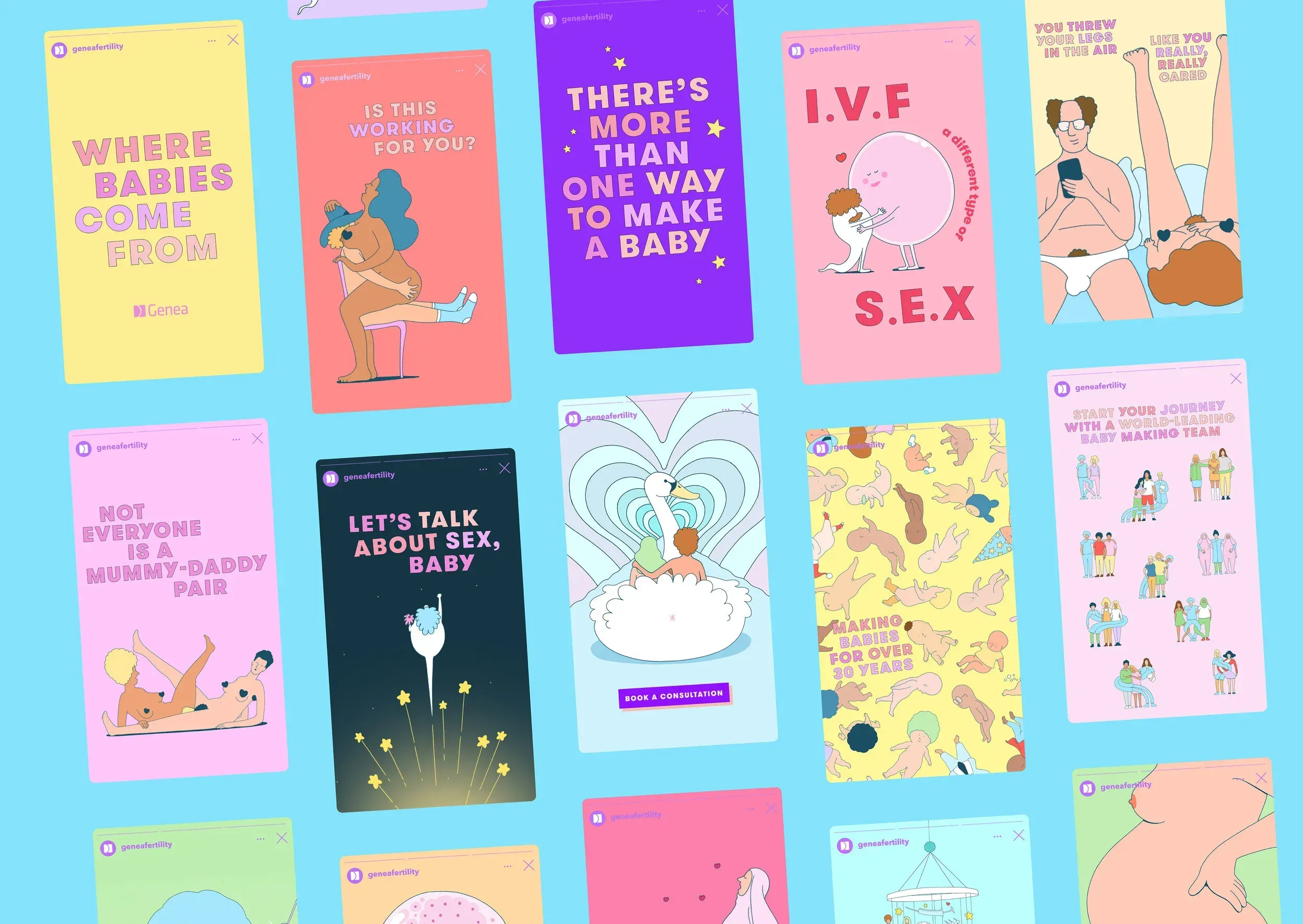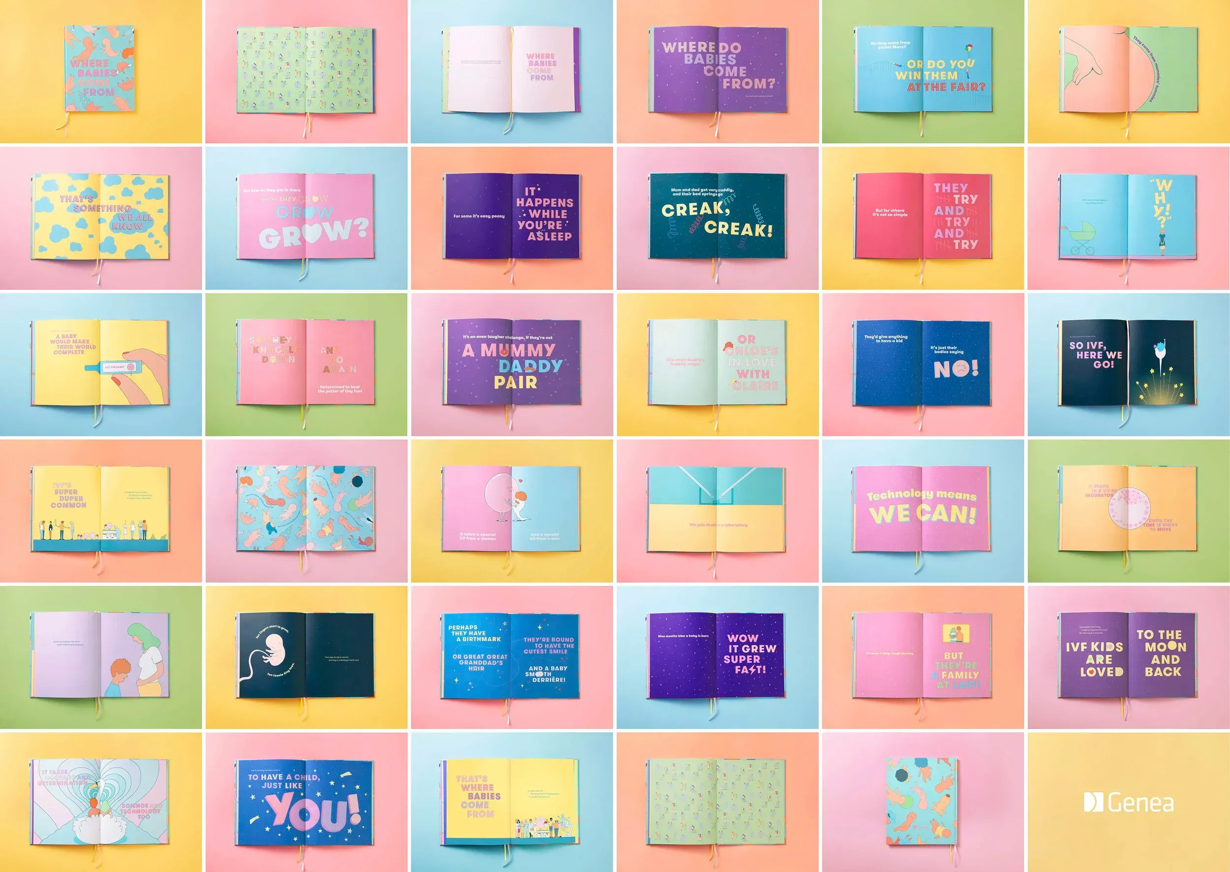 1 in 20 children are conceived by IVF. Despite these numbers, it’s still stigmatised, leaving people with fertility issues feeling they can’t talk about it. Genea, Australia’s leading IVF clinic, wanted things to change. So, we rewrote the story of Where Babies Come From to make I.V.F as natural as S.E.X. We made a film for adults, a book for kids and gave Genea’s brand a joyful, sexy overhaul.